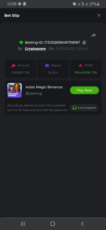 13. Betting ID: 1719831209635249024 Aloha king elvis 102.80x Betting ID: 1719854577341462535 Candy Monsta 134.25x