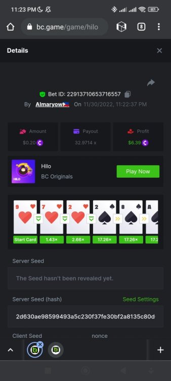 $2,500 Prestige Hi-Lo Multiplayer Challenge #57Almaryoww replied to BCGame_Ewa's topic in Past Challenges